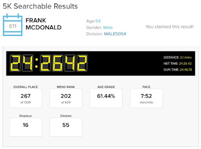 As I made the turn toward the Spelman College campus, I heard the familiar voice of #1 cheerleader Cristal Stoutzenberger, who was serving as a bike marshall on an ElliptiGo bike. I gave her a thumbs-up but kept running vigorously. As I heard the 1-mile alert (7:13 elapsed) I also heard encouragement from Jennifer Butz, which whom I have occasionally run on Thursday evenings at Big Peach Decatur. Closing the loop, we ran for about a quarter-mile in the opposite direction, facing quite a few runners on their second lap - and behind me! After the split, my mouth began to feel a little parched. I had begun the race well-hydrated, but heavy breathing for the past 10 minutes was taking its toll. I was just hoping that there would be a water station somewhere ahead, as had been advertised. Then I saw Teammates Brian and Beverly; they had found the route across to the other side of the race route. I tried to speed up just a bit - I didn't want to let down the TEAM as I passed them - and Brian yelled "Go Frank! THERE'S NO ONE BEHIND YOU!" I'm sure that Brian meant to be 110% encouraging, but what I understood was "EVERYONE IS AHEAD OF YOU! DON'T LET DOWN THE TEAM!" With that, I began focusing on the runner ahead of me, a woman with a knotted ponytail. I visualized an image shared by Olympian Jeff Galloway (not my idea!): I threw a giant rubber band ahead of me, pulling myself closer to the nearest runner in front of me. Unfortunately, my imaginary rubber band had too much slack to pull me any closer. I badly wanted to glance behind me to see if I could spot anyone at all, but I knew that would unnecessarily slow me down, so I just kept facing ahead, thinking "Don't let down the TEAM, don't let down the TEAM!"
