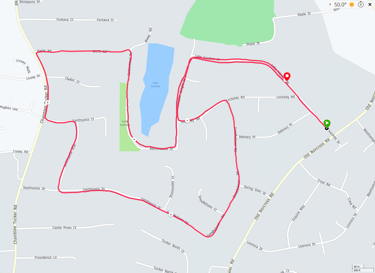 After taking a couple of sips of water, and a few rounds of dynamic leg swings, it was time to start. I stepped up to the line marking the start-finish area, made sure that my watch was synched and ready, took a deep breath, and, and ...