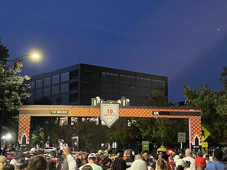 Getting back to me, I'm in the middle of a running "rebuild", in the Atlanta Track Club half-marathon training program, trying to see if I can run a half-marathon in less than 2 hours on Thanksgiving Day. I've done this several times, but my most recent "Breaking Two" accomplishment was nearly 4 years ago. There are probably a few reasons for the long gap, including not having run that many half marathons since that time (thanks pandemic) and having gained about 20 pounds in the past 4 - 5 years. In August I resumed tracking everything I ate with the Weight Watchers app. It works, I'm down 5 pounds after two months, and I'm confident that I will gradually lose more weight if I just maintain awareness of what I'm eating. With the loss of the pounds, and the onset of cooler weather, I can tell that my fitness is improving. I've had some good workouts on the track. In the 10-miler, my goal was to practice goal half-marathon pace. I'll need to run 13.11 miles averaging 9:09 minutes to run a sub 2-hour half-marathon (without rounding off for significant figures, 1:59:57!)